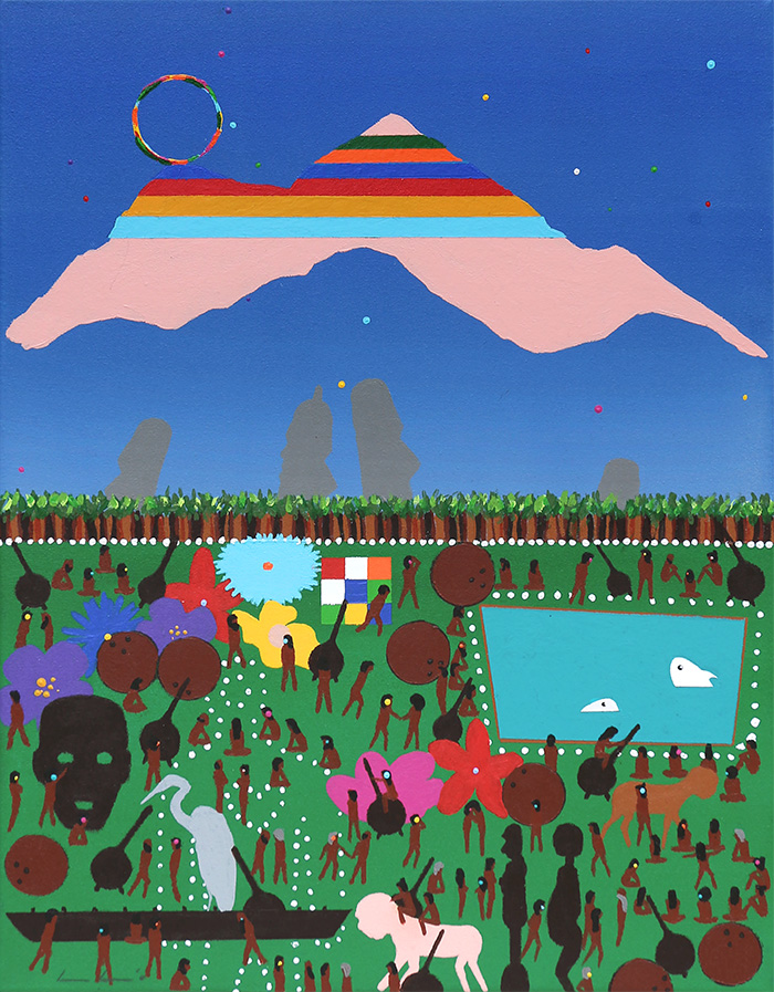 Dispersed Humanoids I, by Andy Leleisi'uao, 2019 acrylic on canvas (SOLD)       Dispersed Humanoids II, by Andy Leleisi'uao, 2019 acrylic on canvas (SOLD)