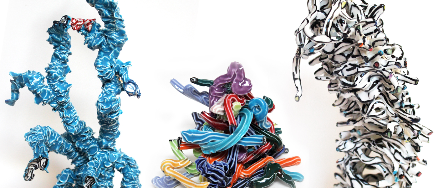 In Janna van Hasselt’s exhibition Flop on Pop, her porcelain structures ooze with tactile exuberance. New woven and flowing ceramic paintings glow from walls while more sculptural glazed forms slump on floating discs of colour. “I find inspiration in the everyday; the minutiae of life as a parent. Precarious stacks of laundry, collapsing play huts,… View more