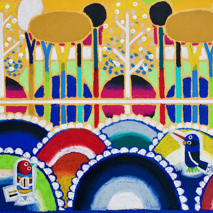 Oil pastel and acrylic on canvas Exhibited in Let the birds increase