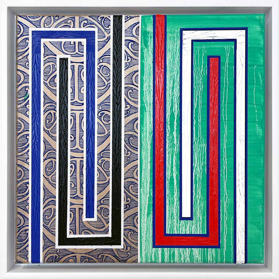 Oil and enamel on canvas, framed