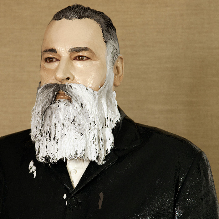 Photographic recording of a painting on live model, archival pigment print, framed.