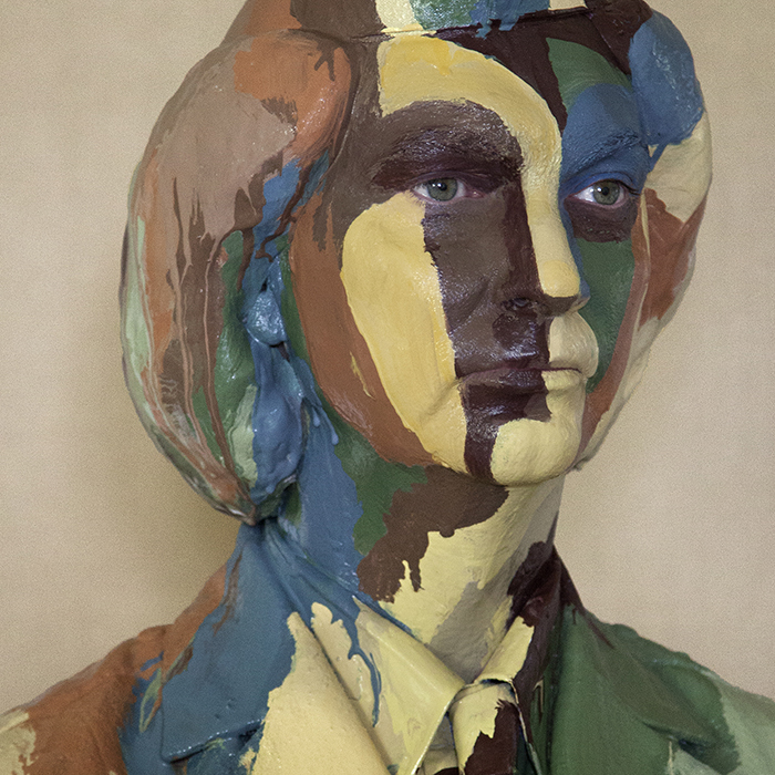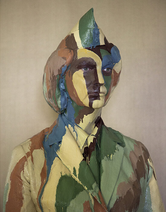 Photographic recording of a painting on live model, archival pigment print, framed.