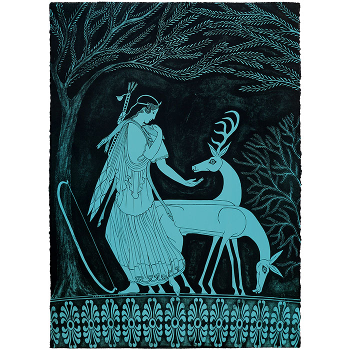 Marian Maguire’s early work was mainly figurative and gestural but in the early nineties she shifted to emblematic architectural forms. Her 1996 series, Library Travelling, incorporated imagery from a wide range of historical sources and linked sixty-six small etchings and three large composite prints in a loose narrative. Perfect Planning and Regarding the Renaissance followed and in these series of paintings she explores the relationship between the architects of the Italian Renaissance and the art, architecture and mathematics of ancient Greece. Through this enquiry she became interested in black-figure vase painting and produced two exhibitions: Vases & Narratives (1999) and Mythical Landscapes (2000).