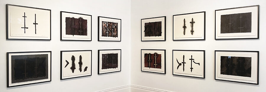 He exhibited extensively throughout New Zealand and overseas, significantly at the XI Sao Paulo Biennale, Brazil 1971, the Sydney Biennale in 1984; Pacific Rim Diaspora, Long Beach Museum LA, 1990; Headlands toured by the MCA Sydney, 1992; and Toi, toi, toi, at the Auckland City Art Gallery, 1999. In 1973 a survey exhibition of Ralph Hotere’s work toured New Zealand, and in 1997 Out the Black Window, a major exhibition of Hotere’s work with poets was mounted and toured by the Wellingtion City Art Gallery. The Dunedin Public Art Gallery toured Black Light, an exhibition of Hotere’s large scale works, during 2000. A selection of his printed works, Empty of Shadows and Making a Shadow: the lithographs of Ralph Hotere, was shown at Christchurch Art Gallery in 2005. In 2020 and 2021 Dunedin Public Art Gallery and Christchurch Art Gallery joined forces to present the major survey exhibition Ralph Hotere:Ātete (to resist).