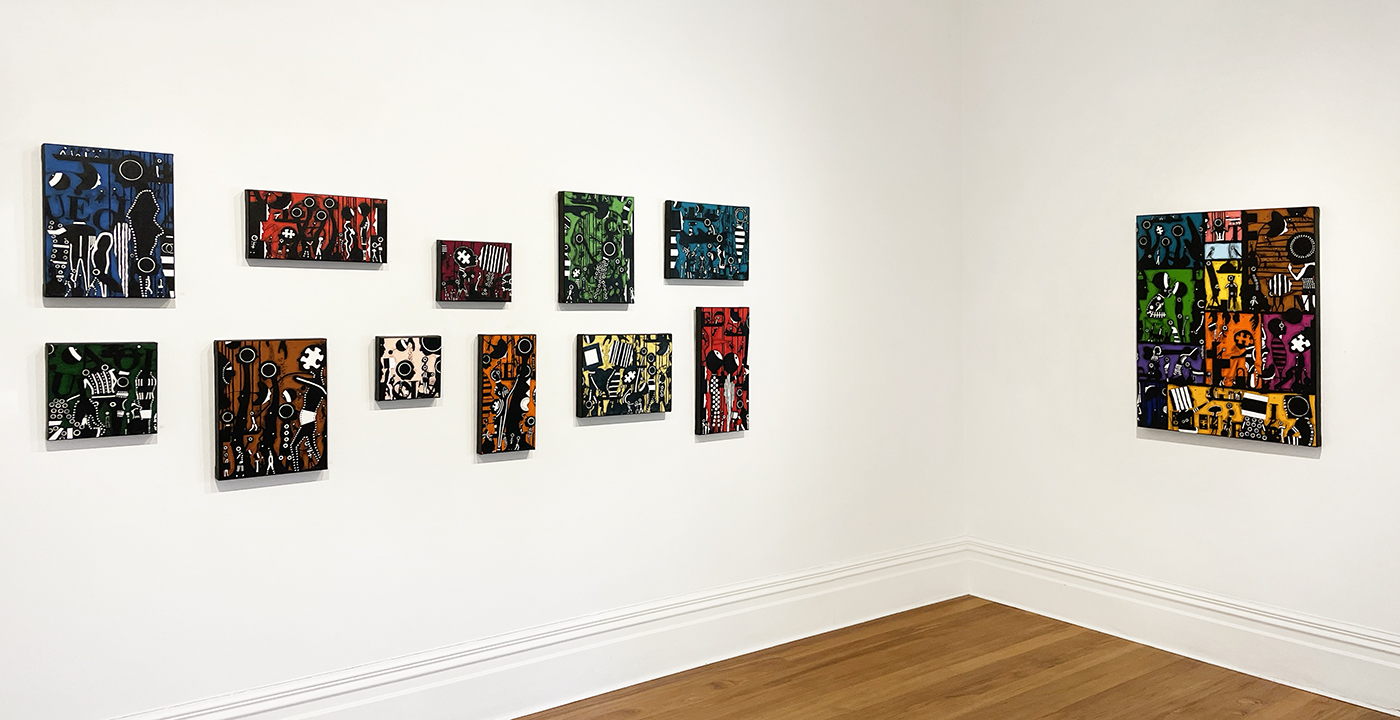 This is the sixth exhibition by Andy Leleisi’uao at PG gallery192 since 2015. Each show has been pictorially distinct yet abiding themes persist, such as social connectedness (or disconnectedness) and inner quandary. Often he imagines a parallel world – perhaps in the Pacific, or somewhere off this planet – in which utopian communities thrive.