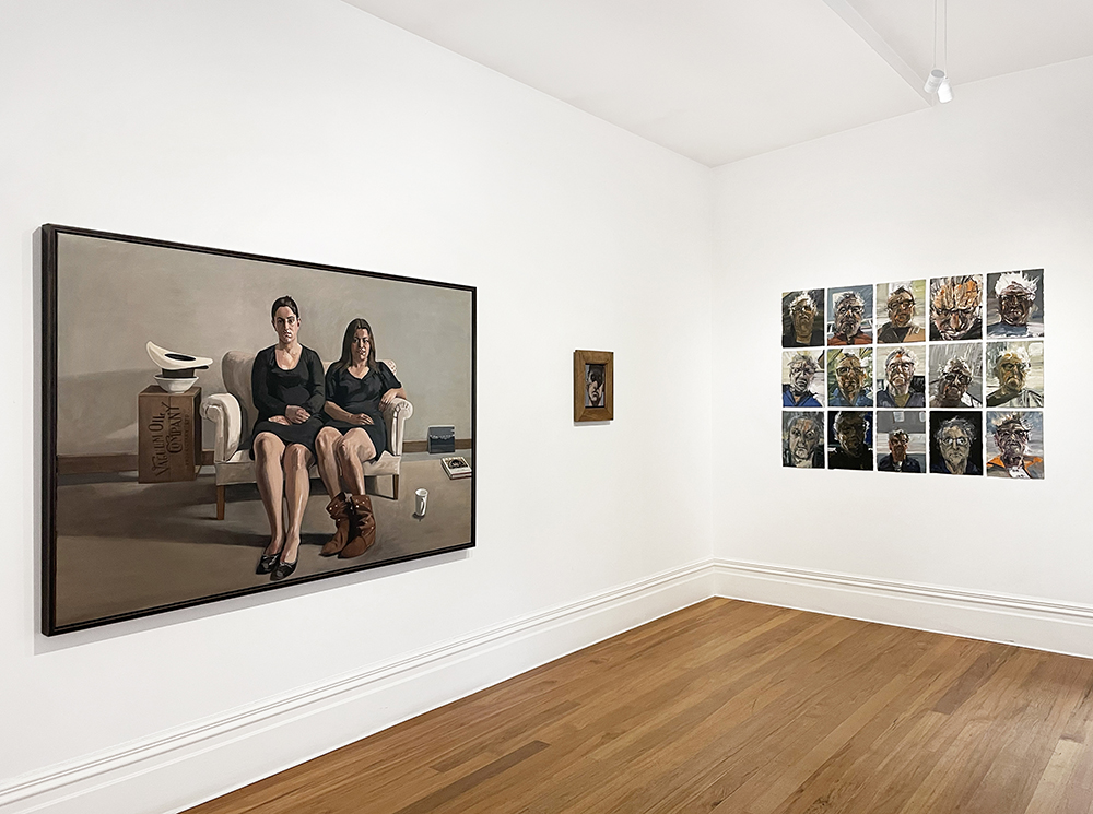 Poi and Mihi, Poihaere and Mihiterina (aka the constant gardener), by Richard McWhannell, 2008, oil on canvas, 1220 x 1830mm framed, $30,000  Head in Cap, by Richard McWhannell, 2024 oil on canvas, 415 x 360mm framed in totara, $3500