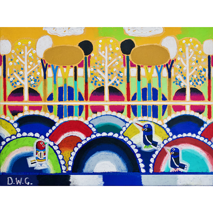 Oil pastel and acrylic on canvas Exhibited in Let the birds increase