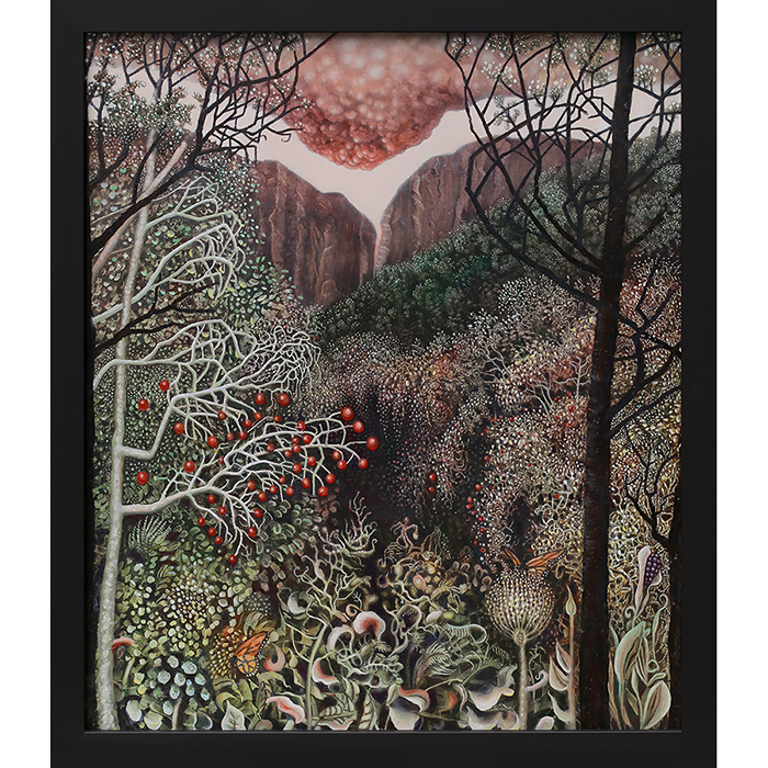 “Her paintings have a distinct surrealistic and fairy tale flavour to them, finding inspiration in the forms of nature and landscape to confect delightful dream worlds.” – Andrew Paul Wood